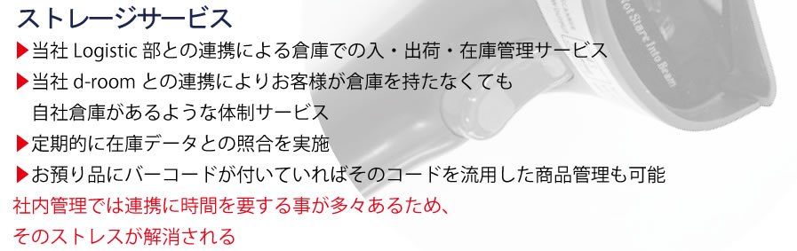 当社 d-room との連携によりお客様が倉庫を持たなくても自社倉庫があるような体制サービス